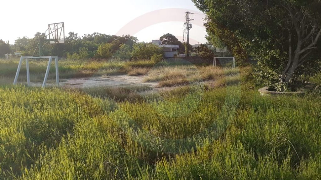 Huejutla, Hgo. – Las canchas de usos múltiples, ubicadas al fondo de la unidad deportiva “El Tordo”, están en total abandono, con maleza tan alta, que pudiera albergar nidos de animales ponzoñosos, que ponen en peligro la integridad física de los deportistas, quienes acuden a dicho espacio.