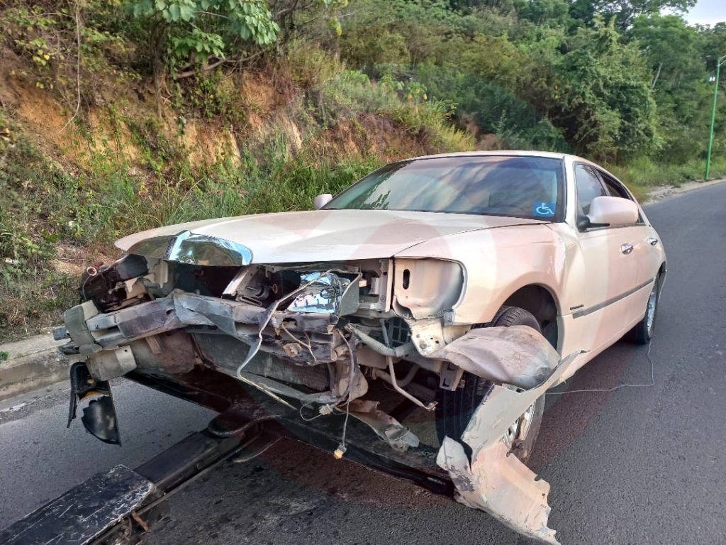 Al llegar al punto indicado, los agentes policiacos se percataron que se trataba de un vehículo de la marca Grand Marquis color blanco, el cual presentaba cuantiosos daños materiales tras el fuerte impacto.