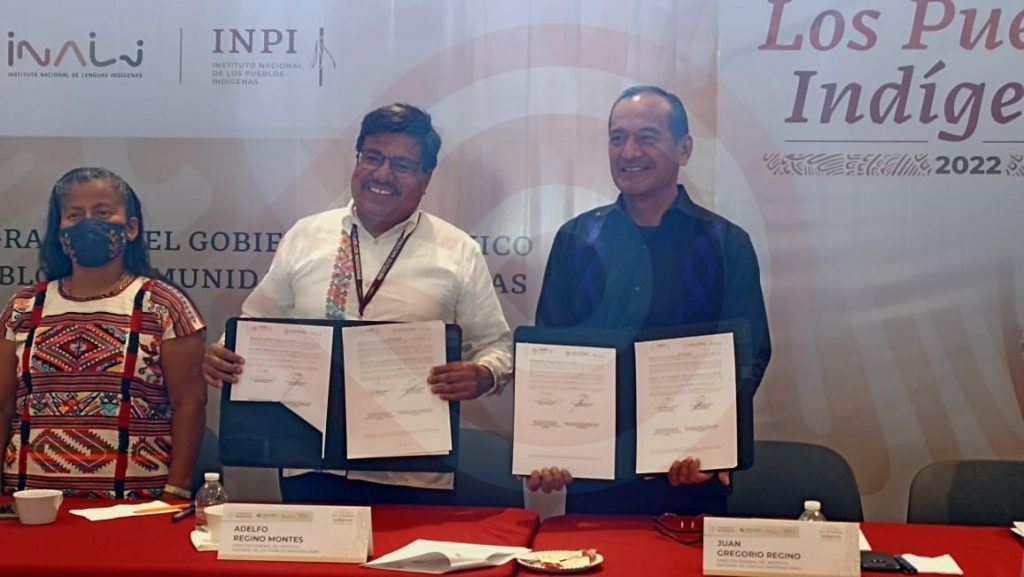 En el marco del Día Internacional de los Pueblos Indígenas, el director general del Instituto Nacional de los Pueblos Indígenas (INPI), Adelfo Regino Montes y la presidenta del Consejo Nacional para Prevenir la Discriminación (CONAPRED), Claudia Morales Reza firmaron un convenio de colaboración; del mismo modo, fue firmado un convenio marco entre el INPI y el Instituto Nacional de Lenguas Indígenas (INALI), cuyo director general es Juan Gregorio Regino.