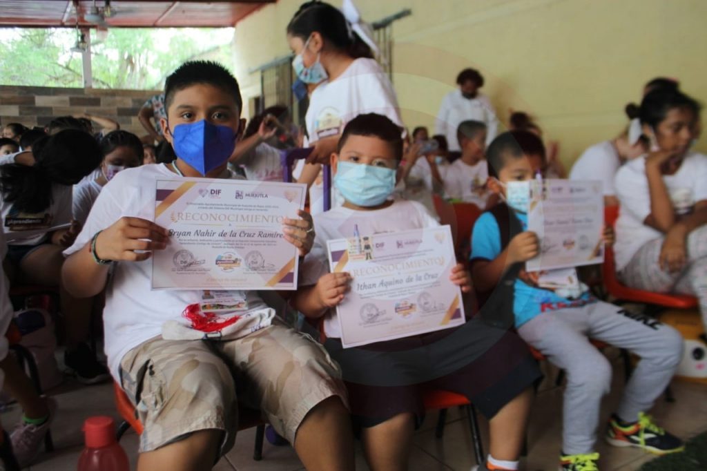 Huejutla, Hgo. – “¡Gracias niñas y niños por participar! ¡Gracias mamás y papás por confiar en el Sistema DIF Municipal! Nos vemos el próximo año”, con este mensaje, Carol Guadalupe Lara Flores, quien preside el DIF local, clausuró el Campamento Educativo “Aprendiendo Contigo de Corazón”.