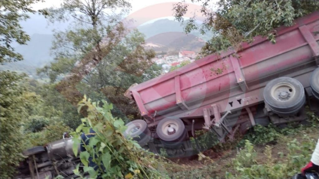 Molango, Hgo. – Un vehículo de carga pesada quedó volcado fuera de la cinta asfáltica, luego que el conductor presuntamente perdió el control de la unidad, donde afortunadamente no hubo personas heridas.