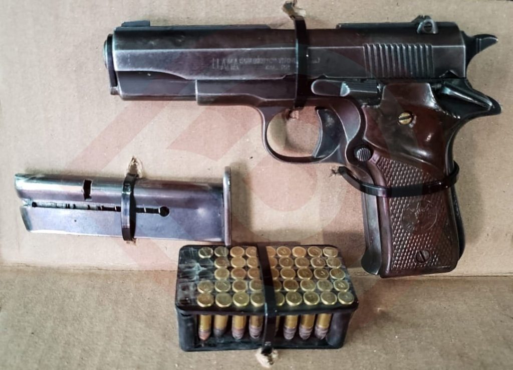 Oficiales estatales, además de intervenir al hombre, le aseguraron un arma de fuego corta abastecida con siete cartuchos útiles y 36 más en un portacartuchos, objetos de los que no pudo acreditar legal portación.