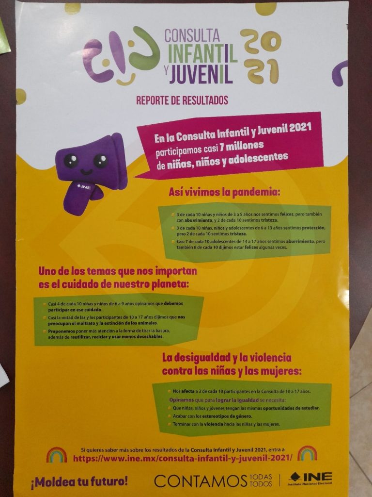 Huejutla, Hgo. – Personal del Instituto Nacional Electoral (INE) en Huejutla de Reyes, difundirá a partir de este mes de septiembre los resultados alcanzados en la Consulta infantil y juvenil 2021.