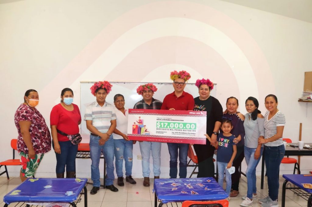 Su primera visita fue en la Escuela Primaria “Ignacio Allende” de la comunidad de Ley Agraria 6 de Enero, a quienes entregó un cheque por 17 mil pesos. Ahí señaló que la mejor inversión que puede hacer un gobierno municipal es en la educación, por ello, reafirmó su compromiso de seguir impulsando este rubro; en pos de un municipio más justo, diverso e inclusivo donde nadie se quede atrás.