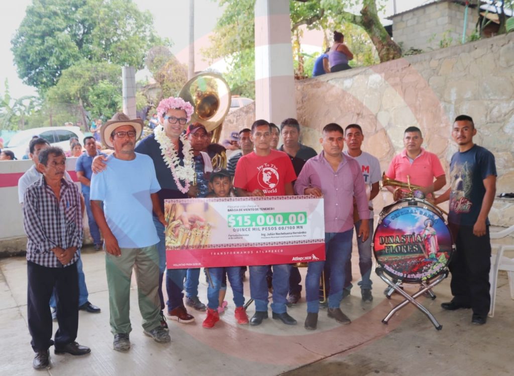 Más adelante se reunió con vecinas y vecinos de Tenexco I a quienes les llevó material de limpieza para el Comité de Salud. Además, de lo recaudado en San José destinaron 15 mil pesos para equipar la banda de viento; y 20 mil más para necesidades comunitarias del Comisariado Ejidal.