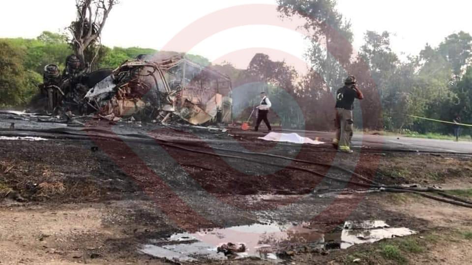 Huejutla, Hgo. – Brutal choque de una pipa que transportaba combustible contra un autobús, dejó como saldo 20 personas fallecidas calcinadas, entre ellos un menor de 16 años de edad.
