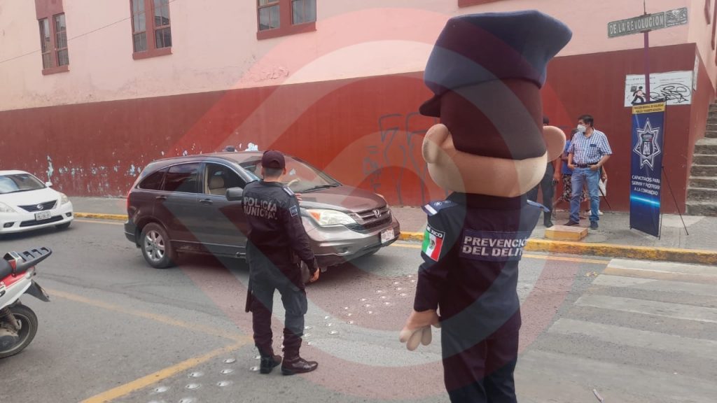 Las acciones correspondientes fueron observadas en las primeras horas de la tarde de este lunes cuando el Agente “TAMO” y elementos de Seguridad Pública y Tránsito Municipal se hicieron presentes en la calle principal de la zona Centro, cerca de la Escuela Primaria Idelfonso Velázquez Ibarra, para orientar a los alumnos y padres de familias sobre la importancia de usar el cruce peatonal.