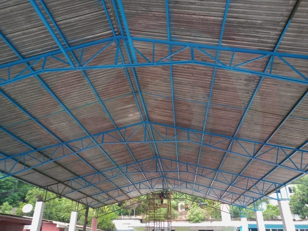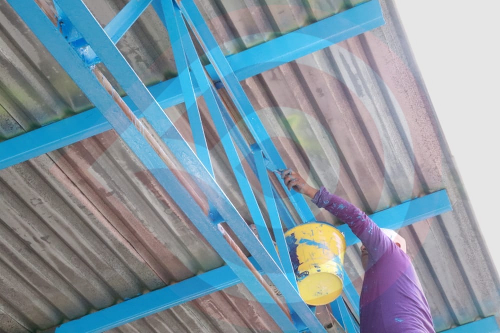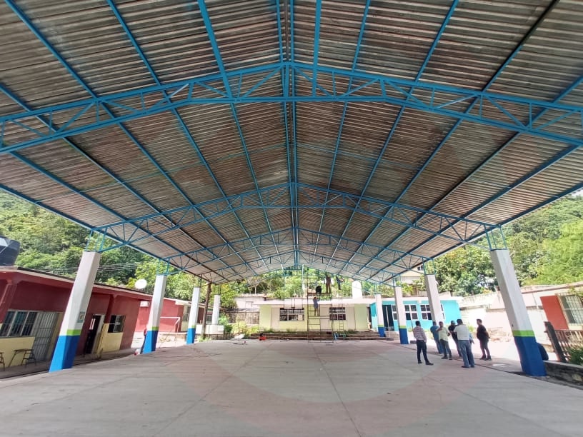 Ahí, el presidente municipal verificó la aplicación de pintura en la estructura, trabes metálicas y columnas para brindar el mantenimiento preventivo, a fin de otorgar una imagen digna al patio cívico, acción que va en beneficio de niñas y niños.