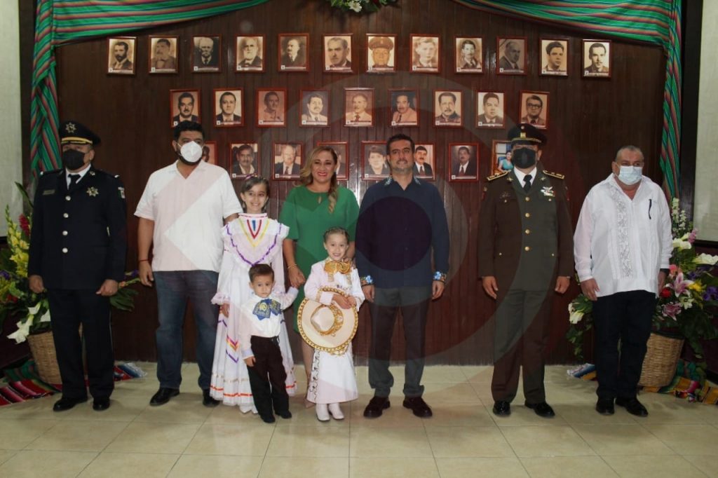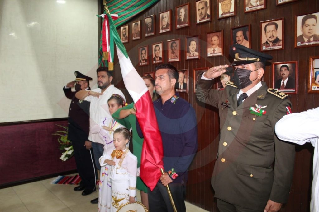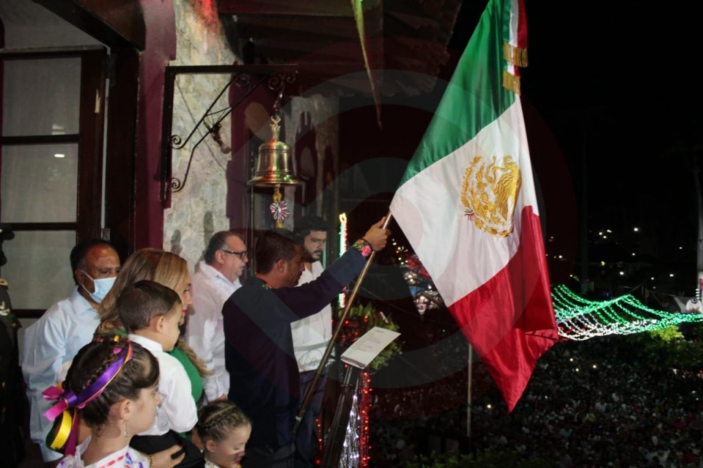 Acompañado, de la presidenta del Sistema DIF municipal, Carol Guadalupe Lara Flores, de sus hijas e hijo, sus padres y hermanos, así como de los miembros de la Asamblea Municipal, autoridades civiles, educativas y militares, alrededor de las 10:45, el alcalde emuló al padre de la Patria Don Miguel Hidalgo, repicando la campana con que dio inicio la lucha de Independencia de nuestro país.