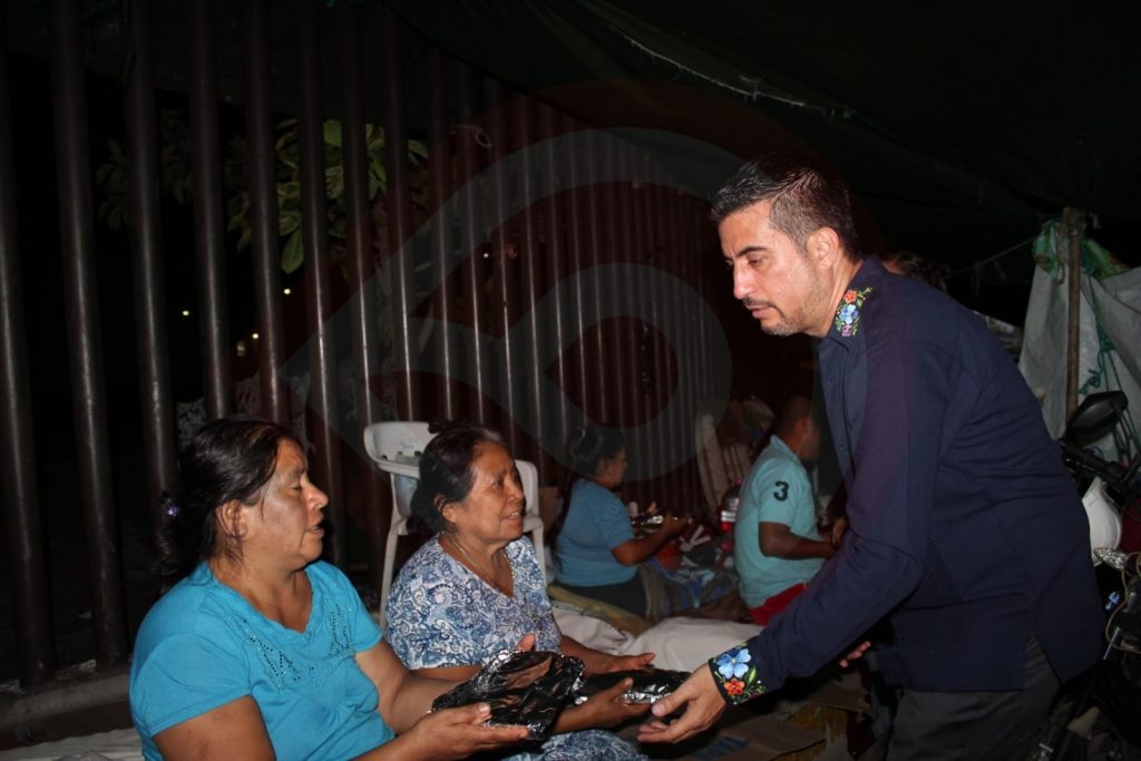 Posteriormente, el presidente municipal y su esposa, en un acto de empatía y solidaridad, se trasladaron a los hospitales que existen en la cabecera municipal, para compartir una cena mexicana con familiares de pacientes hospitalizados que no pudieron asistir a este evento cívico cultural.