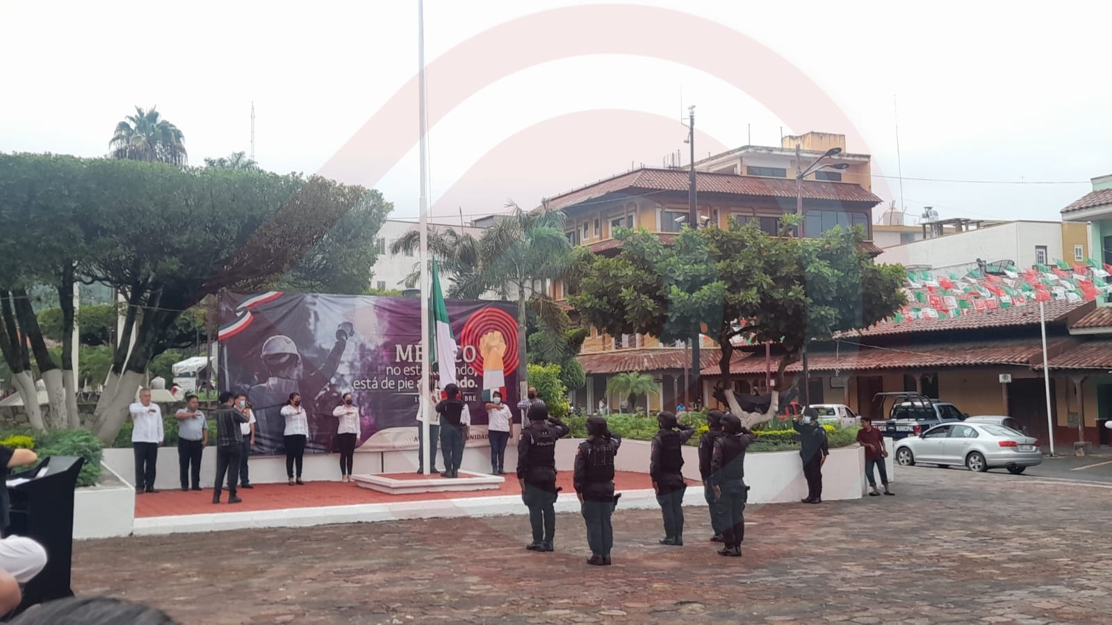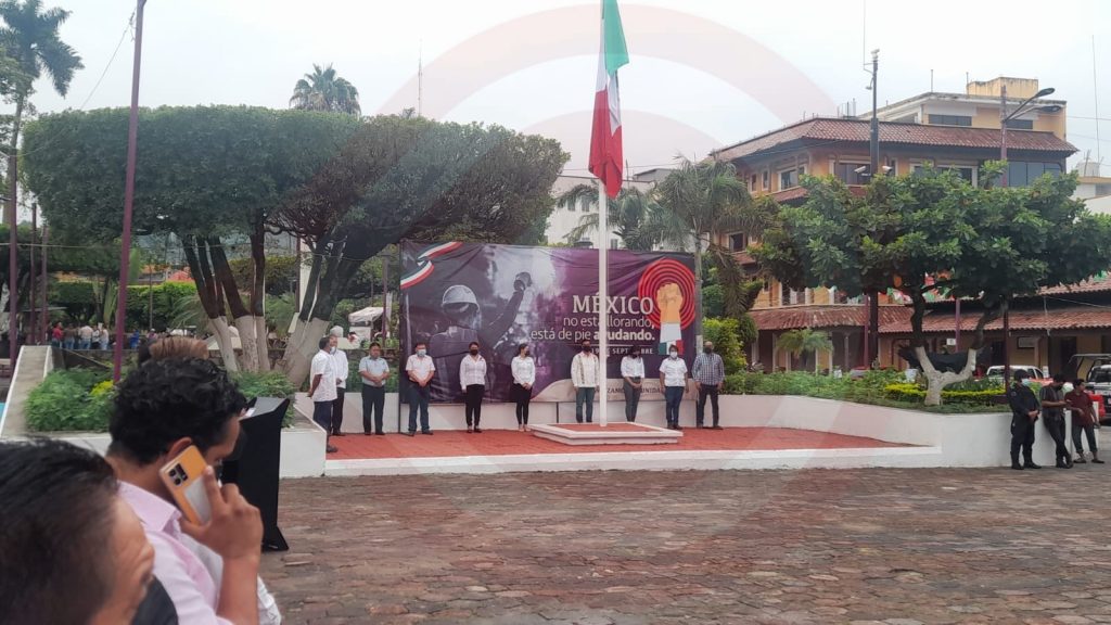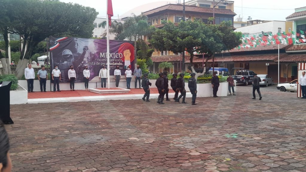 “México no está llorando, está de pie ayudando” se podía leer en una gran lona, colocada frente al asta en la explanada del reloj municipal.