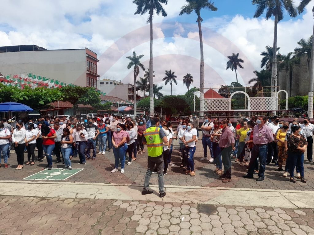 Dijo que, la “alarma” se procedió a dar por medio de un megáfono, cumpliéndose con los tiempos esperados, pues solo fueron 2 minutos y 30 segundos para que todo el personal saliera y se concentrara en la plaza 21 de Mayo.