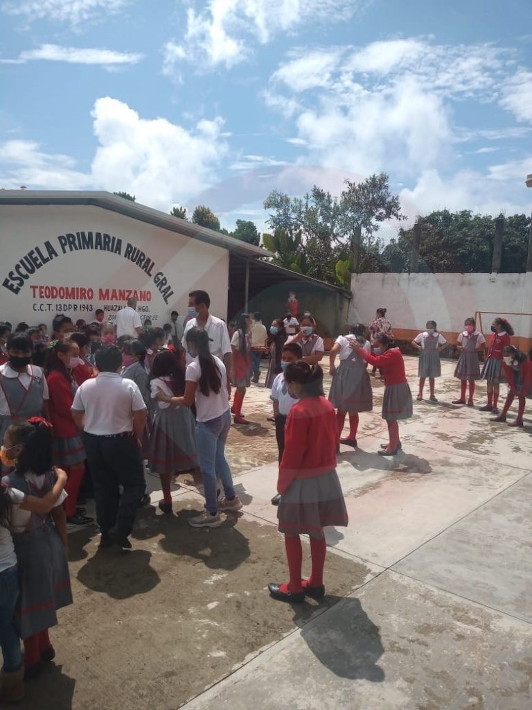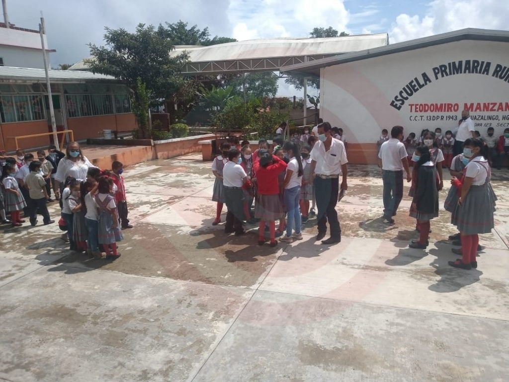 Huazalingo, Hgo. – Personal docente y alumnado de la primaria Teodomiro Manzano de la cabecera municipal, efectuaron un simulacro, con la finalidad de concientizar a todos los escolares para la prevención de los riesgos ante la presencia de fenómenos naturales, incendios y otras situaciones.