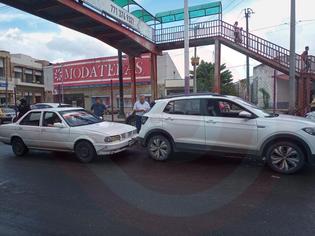 El incidente de tránsito terrestre ocurrió la tarde de este lunes, entre un coche de color blanco, cuyo conductor al parecer perdió el control del volante en una distracción y terminó impactado en la parte trasera de una camioneta blanca, de la marca Volkswagen con placas metálicas del estado de Hidalgo.