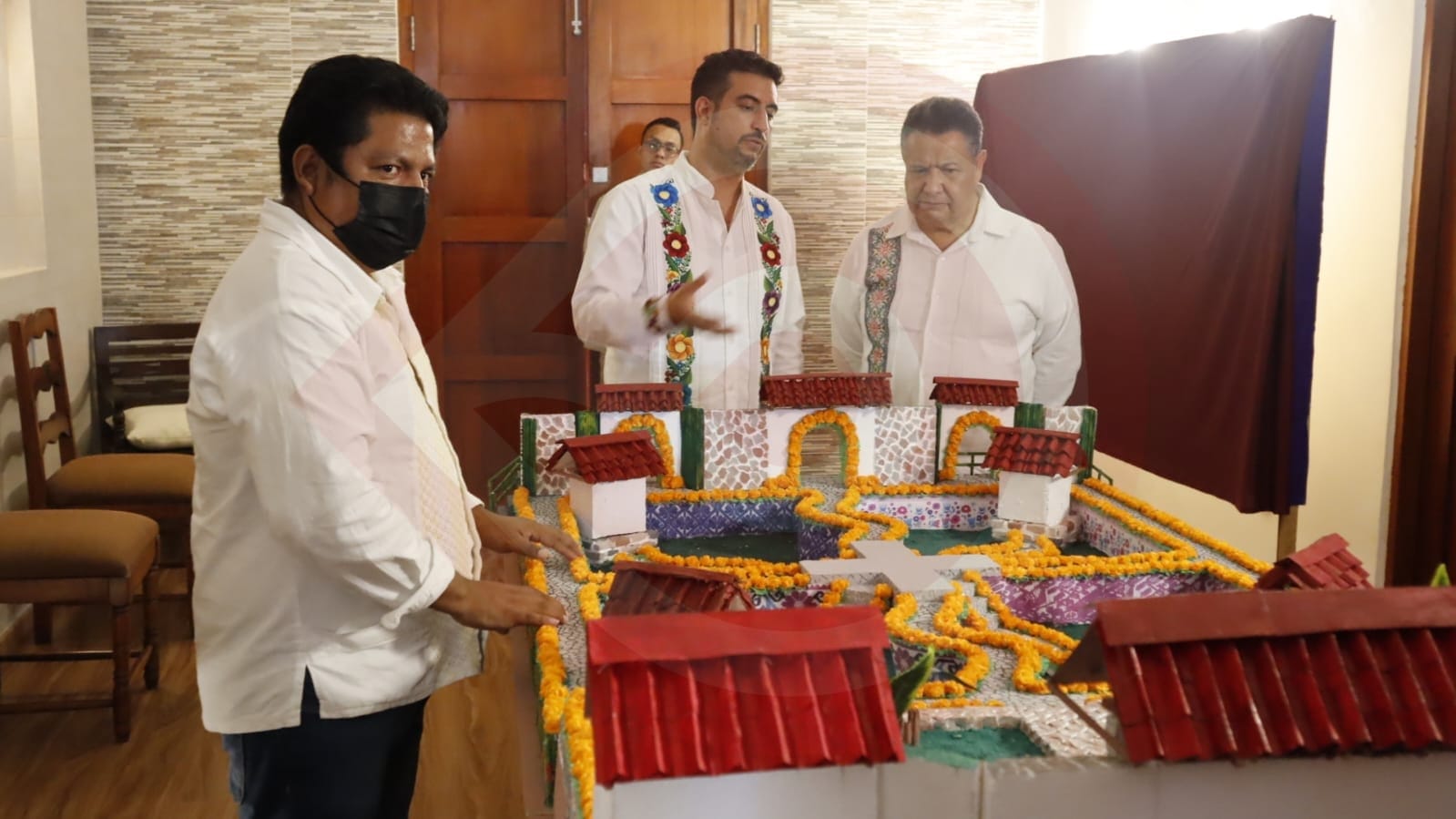 Huejutla, Hgo. – Ante medios de comunicación nacionales, estatales y regionales, el gobernador del Estado, Julio Menchaca Salazar y el presidente municipal, Daniel Andrade Zurutuza, presentaron la maqueta del diseño de lo que será el Centro ceremonial del Xantolo en su edición 2022.