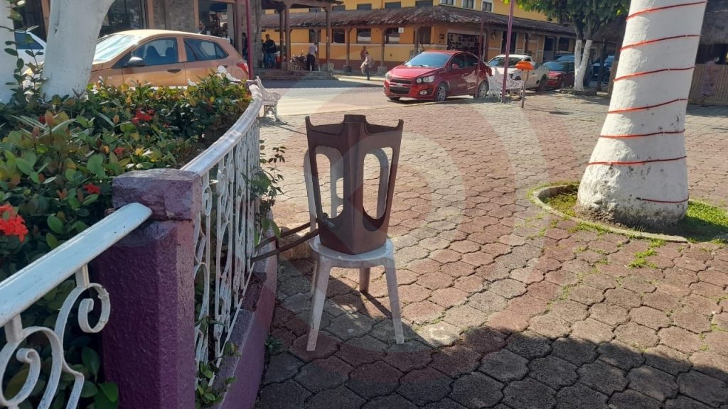 Huejutla, Hgo. – Habitantes de la población, refirieron que, en uno de los pasillos del parque central, hay un comerciante del giro de palomitas de maíz que deja su “carrito” a un lado de una jardinera, y en el frente, dos bancos de plástico afianzados con cadena.