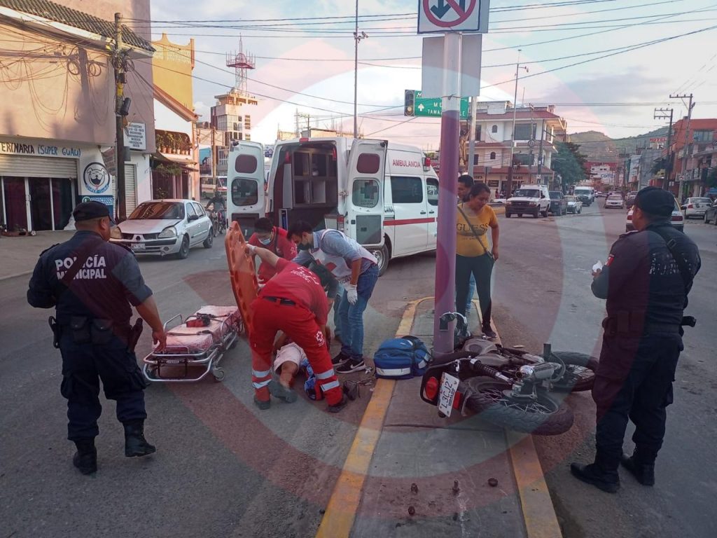 Huejutla, Hgo.- Con probable fractura en una pierna resultó un motociclista que fue brutalmente arrollado por una camioneta la tarde de este viernes en el bulevar central Bicentenario de la carretera México-Tampico, a la altura de la glorieta Hidalgo de la colonia Juárez de esta ciudad.