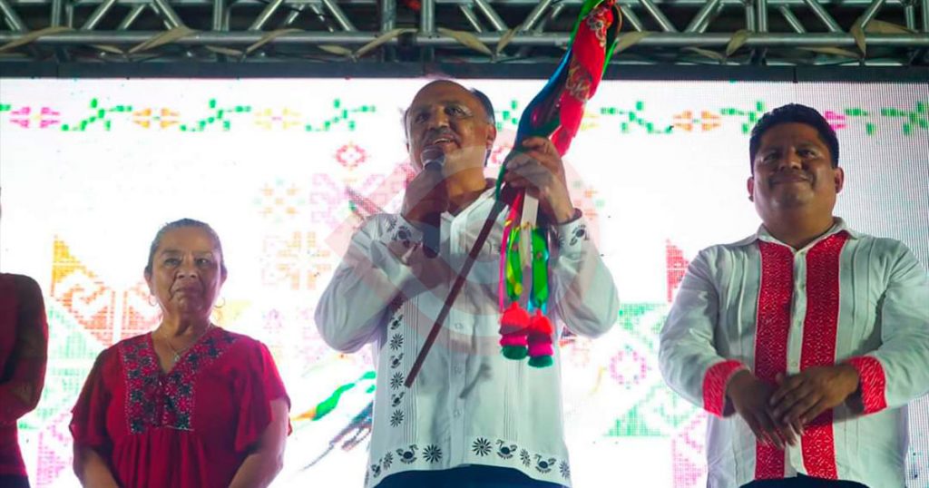 • Mediante entrega del bastón de mando el presidente municipal de Aquismón pasó la estafeta a Huejutla para el festival más importante de las huastecas