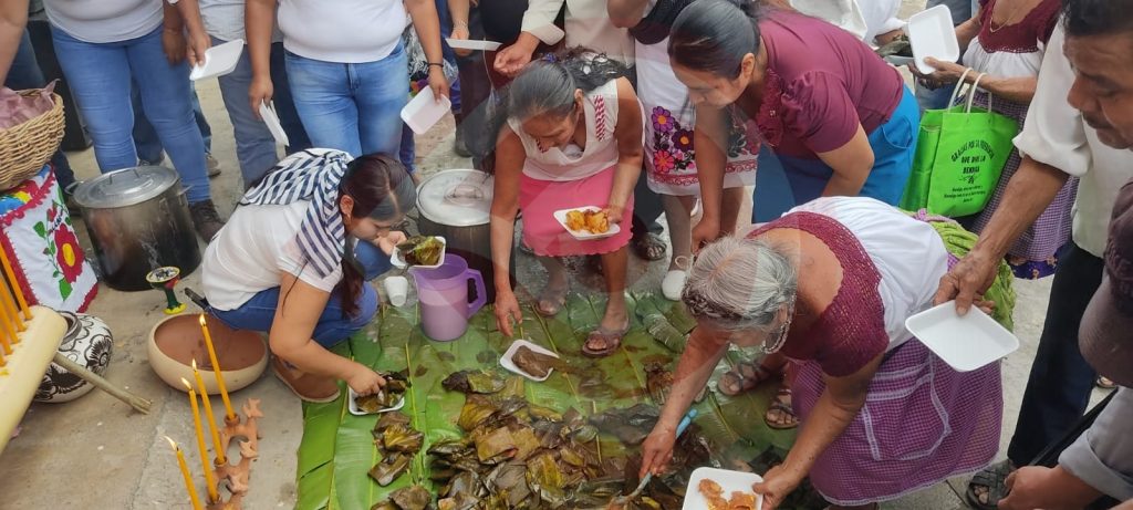 Fue en la explanada del palacio municipal, donde se realizó la primera ofrenda, se dieron cita los habitantes y autoridades, quienes al son del violín, jarana y guitarra, ofrendaron los primeros tamales, chocolate, café y pan.