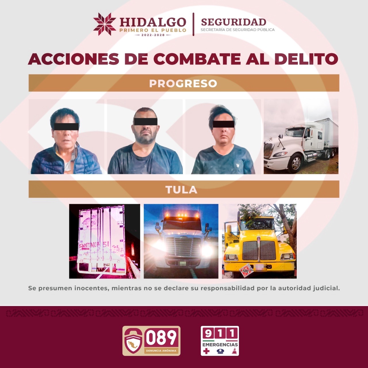La SSPH recupera tres tractocamiones y asegura a tres personas