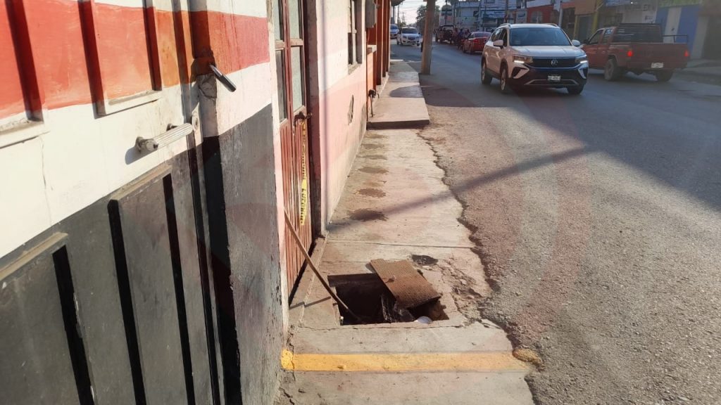 Huejutla, Hgo.- Habitantes de la colonia 5 de Mayo manifestaron que, en una de las banquetas de la calle Yucatán, hay un registro de drenaje domiciliario sin cubierta, el cual es un riesgo para los transeúntes.