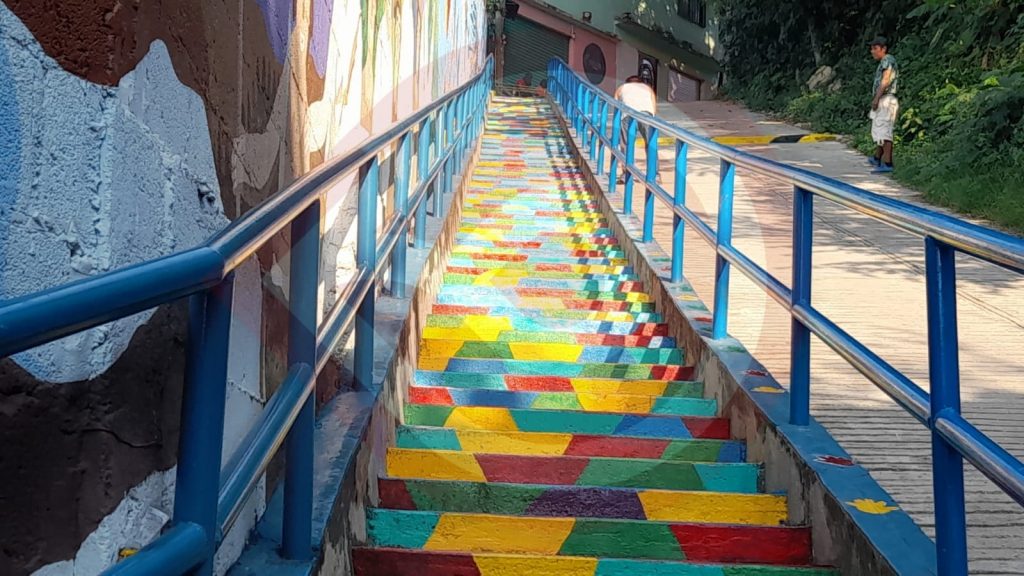 Dijo que, la presidencia municipal apoyó con pintura y tíner, mientras que la mano de obra fue proporcionada por los integrantes de la delegación municipal; destacando que los trabajos empezaron la noche del viernes con el lavado de las escaleras y los días sábado y domingo se procedió a pintar de colores las escaleras en base a un diseño previamente determinado.