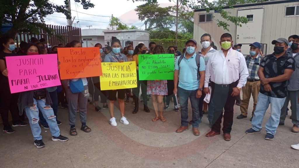 Fue después de las 12:00 horas, cuando alrededor de 40 vecinos encabezados por su delegado de nombre Oscar Martínez Arroyo, portando pancartas llegaron al nosocomio para protestar por la muerte de María Juliana N., de 34 años y exigir una mejor atención para las mujeres embarazadas.