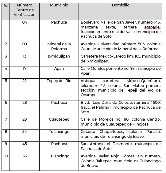 Por lo pronto, entrarán en operación tres unidades de verificación vehicular en Pachuca, dos en Tulancingo, una en Mineral de la Reforma, Ixmiquilpan, Tepeji del Río, Apan y Cuautepec de Hinojosa, en un horario de lunes a viernes de 8:30 a 18:00 horas y sábados de 8:30 a 14:00 horas.