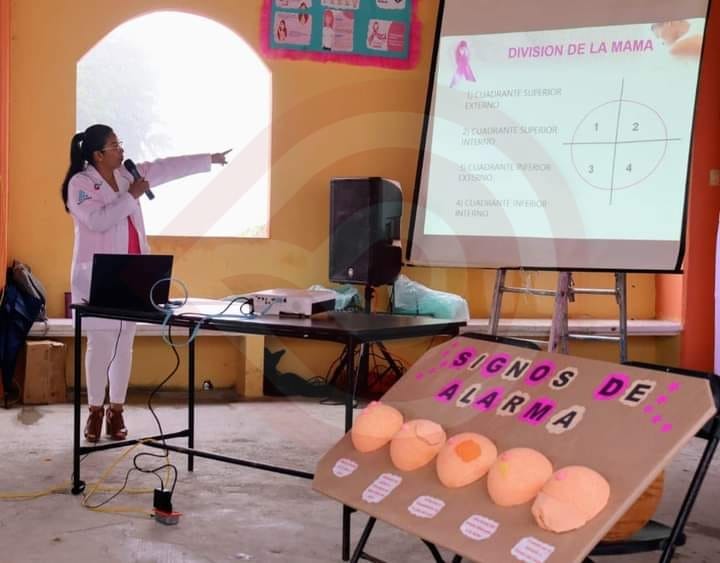 Xochiatipan, Hgo. – En el marco de la conmemoración del “Día de la lucha contra el Cáncer de mama”, el sistema DIF local que preside Dulce Fabiola Hernández Fuentes, en coordinación con la dirección de salud, impartió una importante plática en torno a la autoexploración y detección temprana de esta enfermedad.