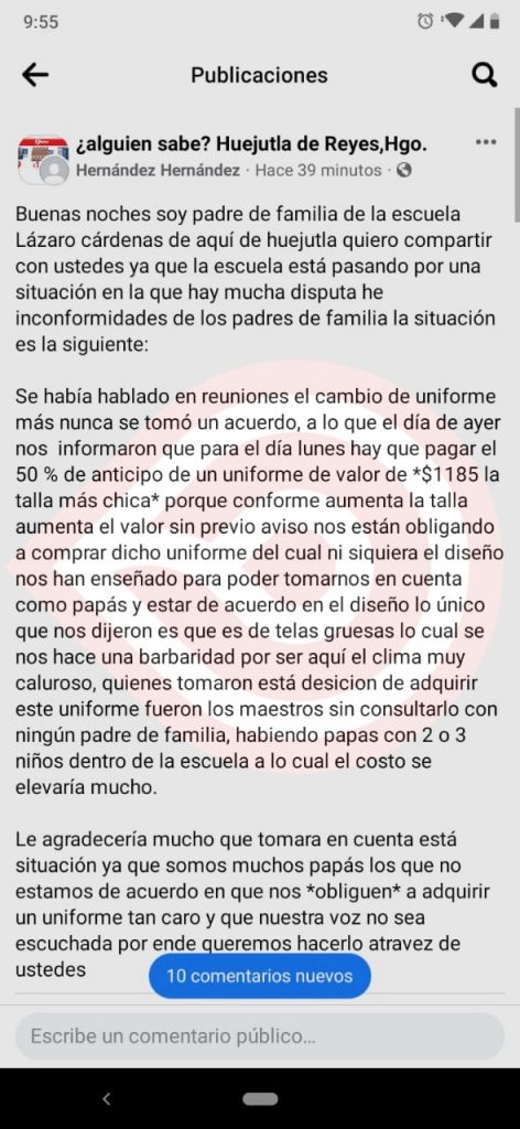 Por este conducto levantaron un sentido reclamo y llamado al Secretario de Educación en Hidalgo y al gobernador Julio Menchaca para que intervenga y frene lo que aprecian como abusos de los directivos escolares de dicha institución que atenta contra la economía familiar.