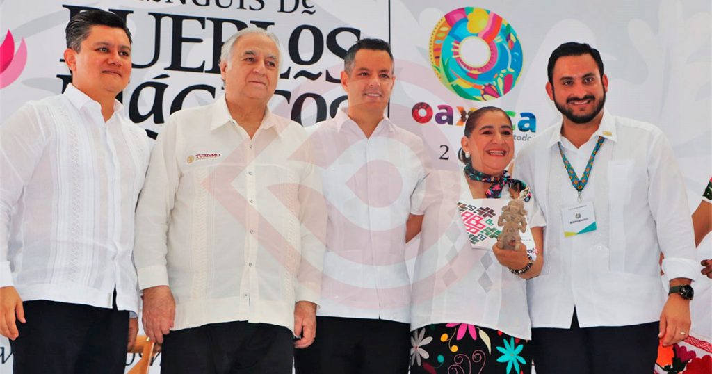 Pachuca de Soto, Hgo.- En Oaxaca, durante la cuarta edición del Tianguis de Pueblos Mágicos se realizó el cambio de estafeta en un evento encabezado por el titular de la Secretaría de Turismo de México, Miguel Torruco Marqués; el gobernador de Oaxaca, Alejandro Murat Hinojosa, y con la representación del gobernador del Hidalgo, Julio Menchaca Salazar, asistió la secretaria de Turismo de la entidad, Elizabeth Quintanar Gómez.