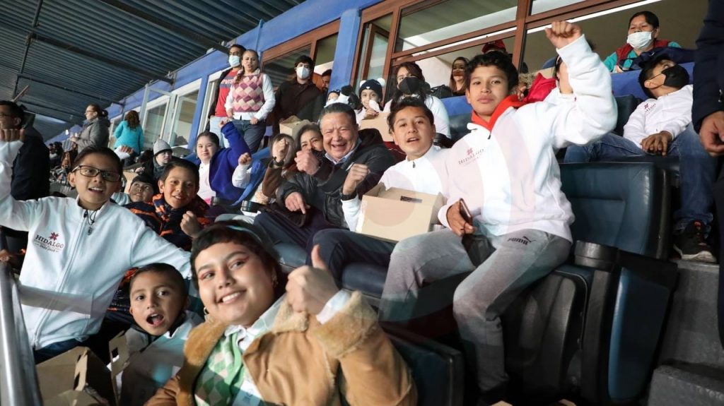 Así, por segunda vez, el palco del Gobierno del Estado en el estadio “Hidalgo”, albergó a niñas, niños y adolescentes que tuvieron oportunidad de estar con el jefe del Ejecutivo en la entidad, lo que es un hecho sin precedentes.