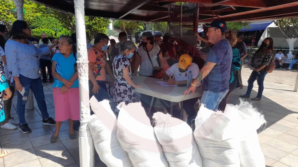 En la colonia Centro la entrega de cacao y azúcar se llevó a cabo después del mediodía del sábado 22 de octubre citándose los vecinos en las instalaciones del Kiosco Municipal.