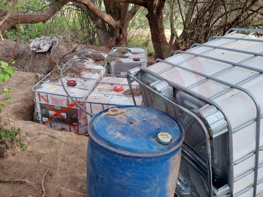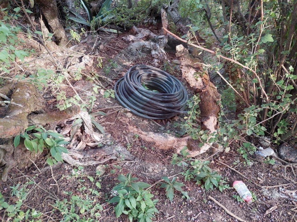 Por su parte, en el municipio de Singuilucan, en terrenos de la localidad de Tecoaco, en un espacio habilitado como ‘nido’ o depósito de combustible, se realizaron los aseguramientos de 5 contenedores para mil litros (uno con hidrocarburo), un tambo para 200 litros abastecido y 150 metros de manguera.