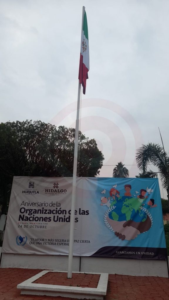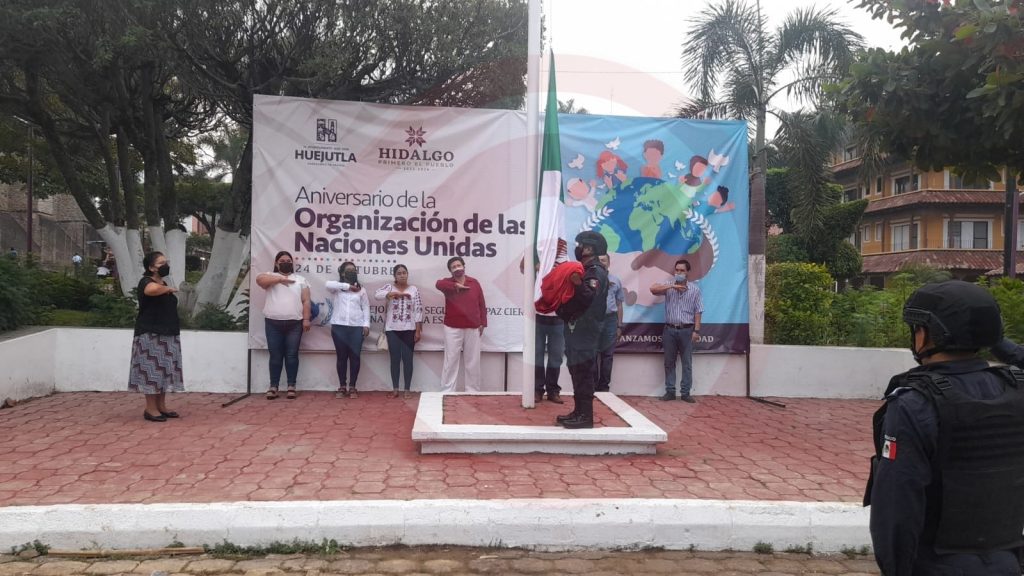 Huejutla, Hgo. – Autoridades municipales realizaron el izamiento de bandera a toda asta con motivo de la celebración del 77 Aniversario de creación de la Organización de las Naciones Unidas.