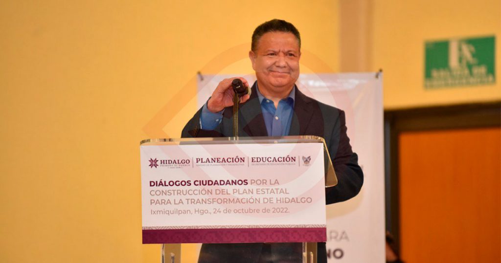 Pachuca de Soto, Hgo.- El gobernador Julio Menchaca Salazar acudió a la Universidad Tecnológica del Valle del Mezquital, sede de los “Diálogos Ciudadanos por la Construcción del Plan Estatal para la Transformación de Hidalgo”. “Este proyecto busca dar una sacudida a la realidad por la que atravesaba nuestro estado. El cambio de régimen que encabezamos nos obliga a estar cerca de la gente”, indicó.