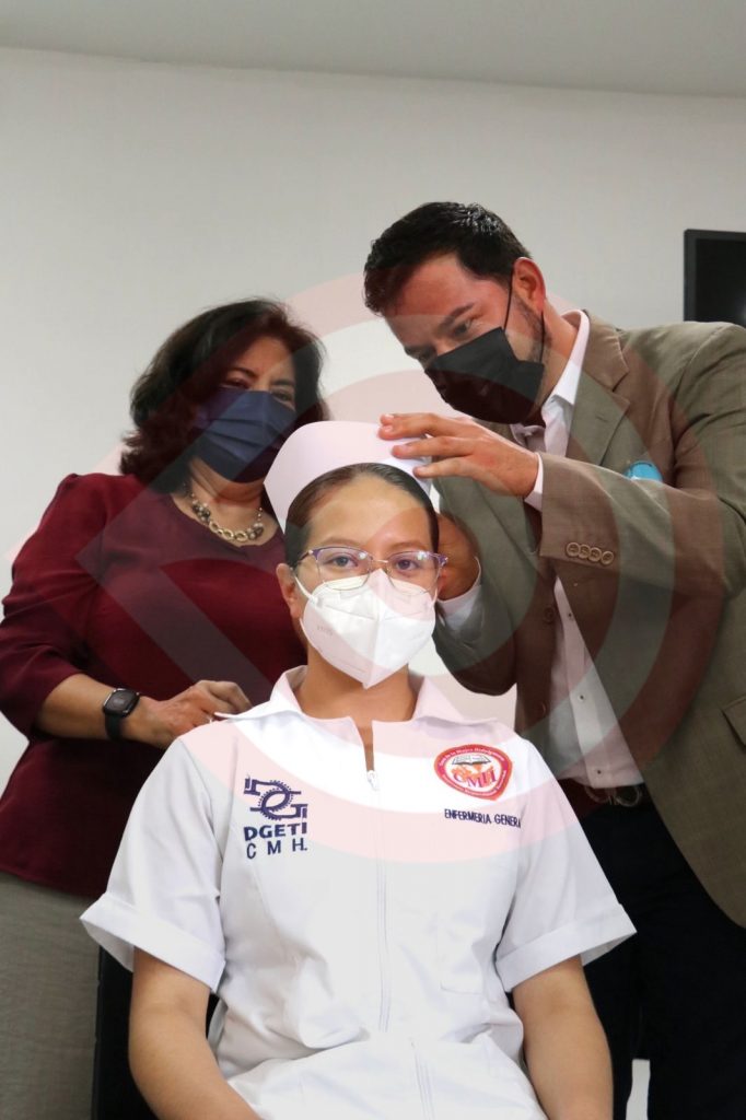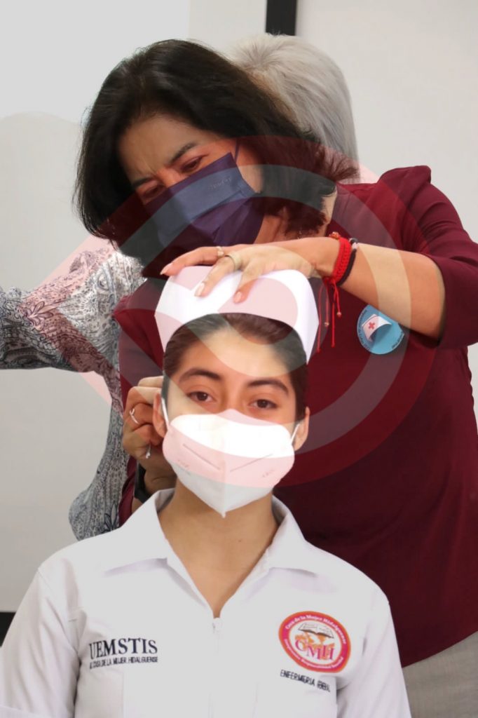 Pachuca, Hgo.- Edda Vite Ramos, presidente del Patronato del Sistema para el Desarrollo Integral de la Familia DIF Hidalgo, encabezó la ceremonia de “Imposición de Cofia” a 51 estudiantes del bachillerato tecnológico en enfermería.