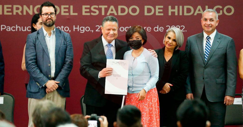 Pachuca de Soto, Hgo.- En un acto de justicia social, el gobernador Julio Menchaca Salazar, entregó 115 títulos de propiedad a ejidatarias y ejidatarios hidalguenses, al tiempo de firmar un convenio de colaboración con el Instituto Nacional del Suelo Sustentable (INSUS), hecho que manifiesta el respaldo gubernamental hacia la comunidad agraria en la entidad.