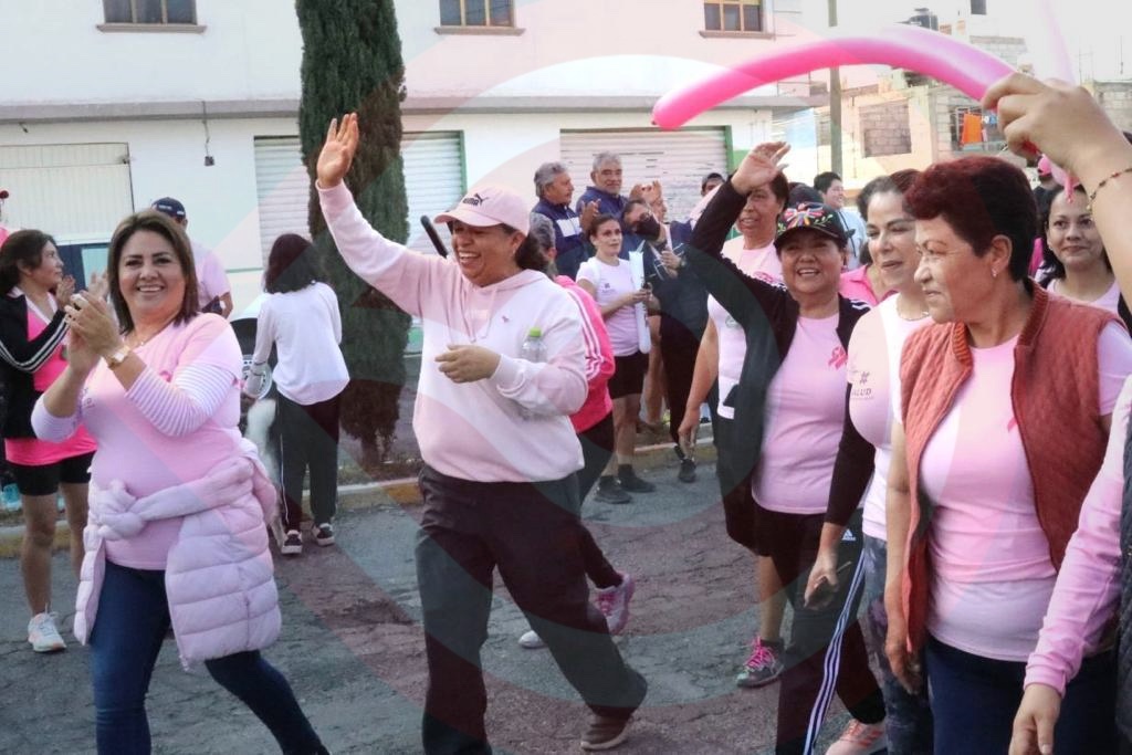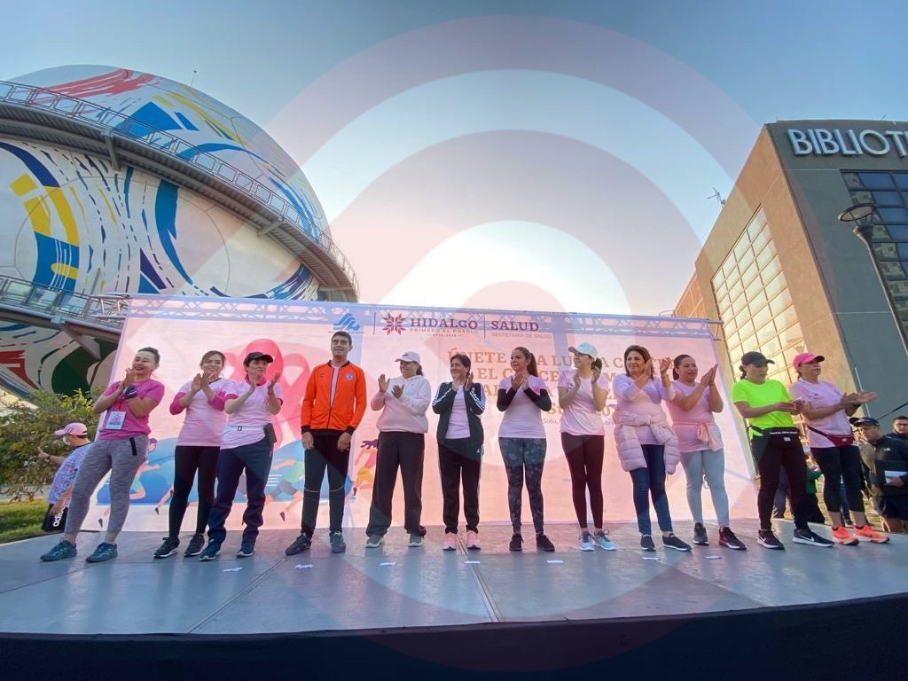 Desde temprano mujeres hidalguenses acudieron al Parque David Ben Gurión donde les fueron entregadas playeras color rosa conmemorativas al evento que incluían el hashtag #ContraElCáncerDeMamaYoActúo.