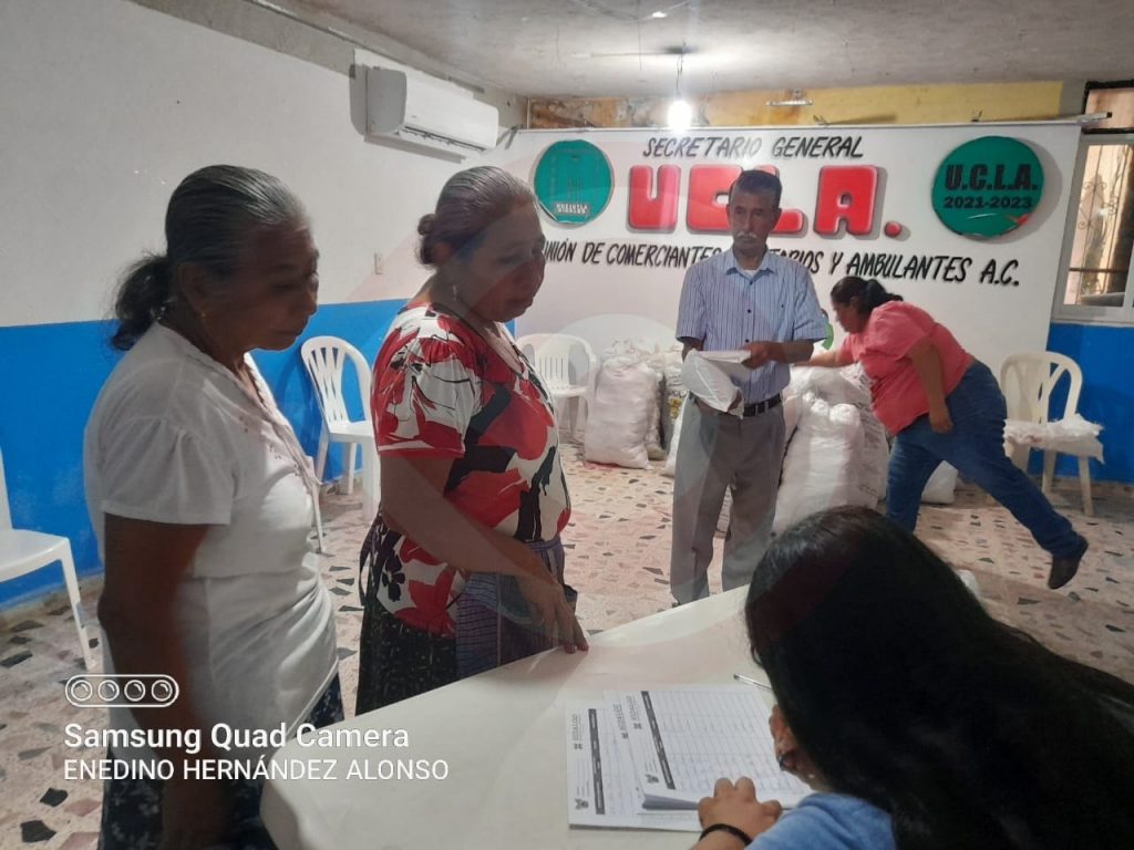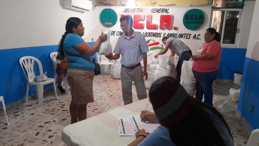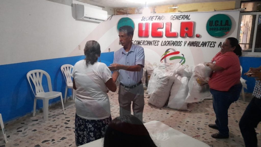 “Gracias al señor Gobernador, Julio Menchaca, durante este lunes se procedió a entregar a los socios del mercado y de la UCLA el apoyo que se recibió; son 25 costales con 40 paquetes cada uno” explicó.