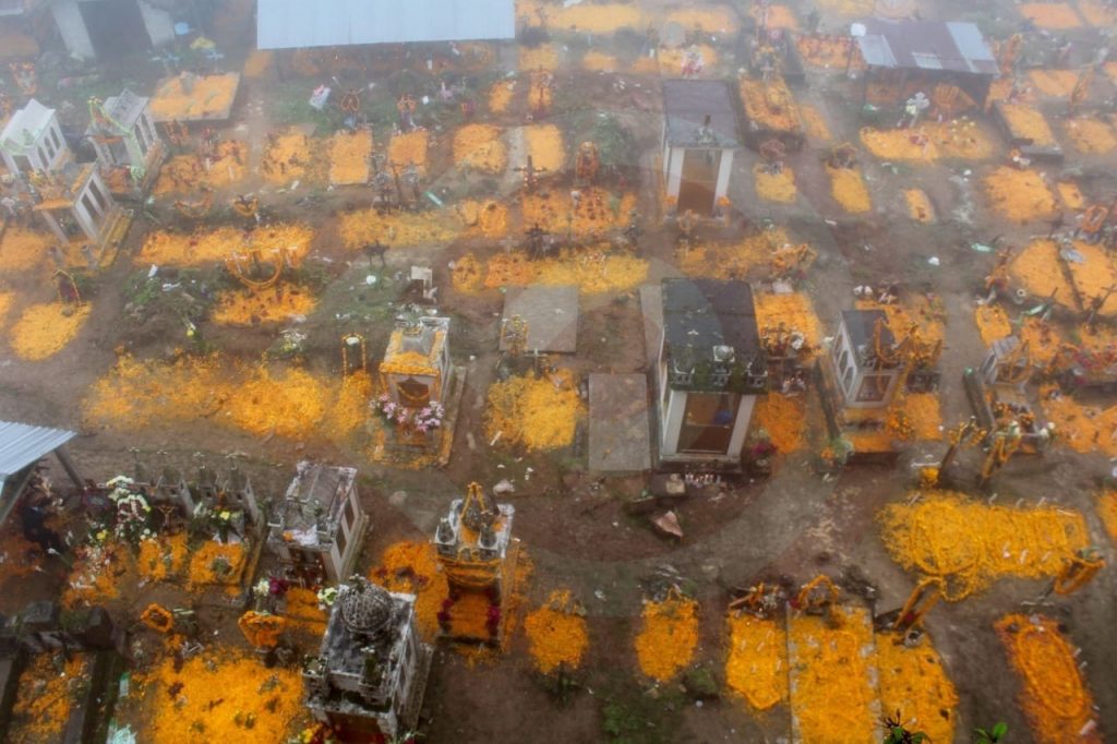 Las visitas al panteón continúan vigentes y se colorean de naranja, se entierran o colocan encima canastas con comida y velas en honor a las almas que nos visitan. Desojan las flores de cempasúchil para adornar el lugar de reposo, mientras en el fondo, los tríos huastecos y las bandas de viento entonan sones propios de Todo Santos o aquellas melodías que en vida cantaban y bailaban los difuntos.