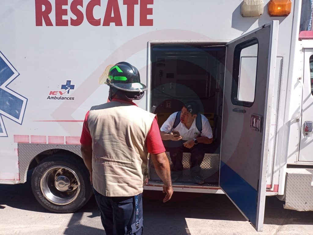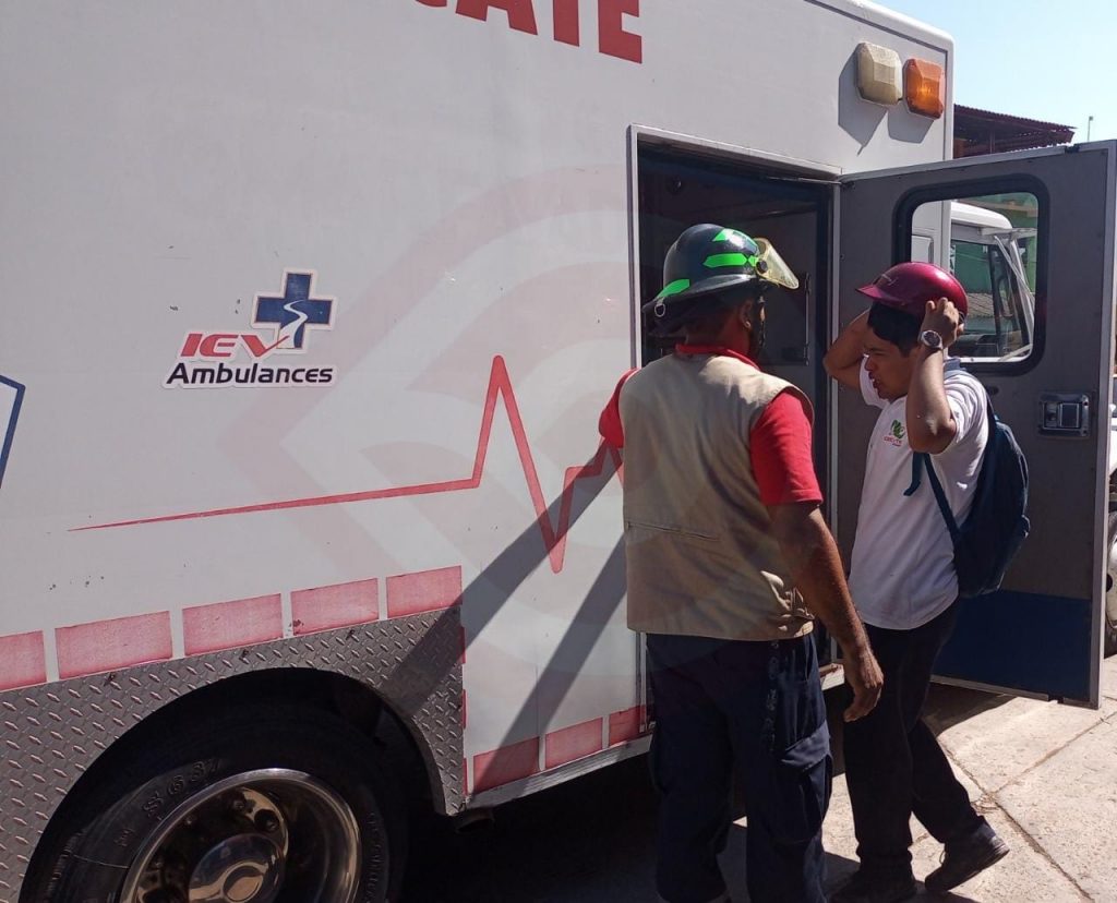 El accidente ocurrió la mañana de este jueves, en el bulevar Adolfo López Mateos de la colonia Aviación Civil de esta ciudad, hasta donde arribaron elementos del Heroico Cuerpo de Bomberos para atender a un joven de nombre Marco Antonio N., de 18 años de edad, quien sufrió una herida contusa cortante en la cara, a la altura del labio superior de aproximadamente 2 centímetros y una lesión en uno de sus dientes superiores.