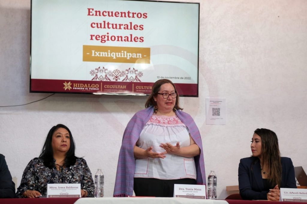 Ixmiquilpan, Hgo. – Durante el tercer Encuentro Cultural Regional en Ixmiquilpan, Tania Meza Escorza, titular de la Secretaría de Cultura, aseguró que el objetivo es tejer redes de trabajo con los municipios hidalguenses para el fortalecimiento e intercambio de conocimientos a favor de la cultura.