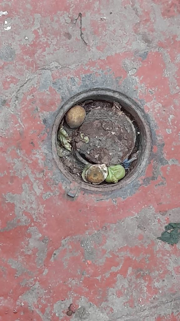 Agregó que, en el pasillo en donde se ubican las vendedoras de enchiladas de canasta, el cual es muy transitado, hay quienes cubren esos hoyos con tierra y verduras, que se van al interior del drenaje y obviamente lo obstruyen.