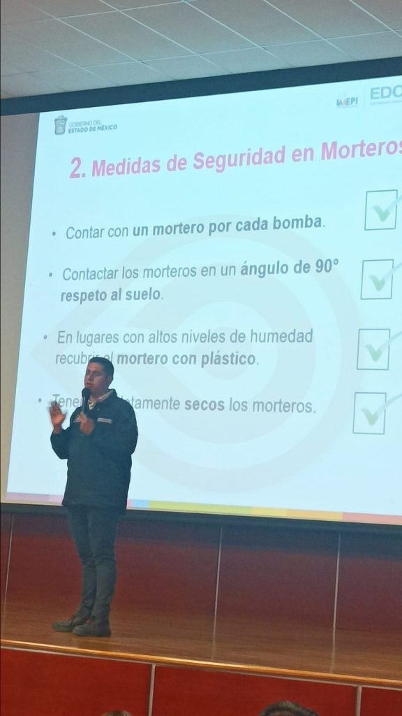 Esta capacitación fue impartida por el Instituto Mexiquense de la Pirotecnia y coordinada por el Lic. Enrique Padilla Hernández subsecretario de Protección Civil en el Estado.