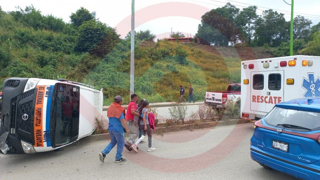 Al arribar al lugar localizaron una combi de la ruta El Arenal – Pepeyocatitla – Huejutla, la cual se encontraba volcada sobre el camellón central, por lo que procedieron a brindar la atención a los pasajeros lesionados, entre ellos menores de edad; una menor requirió ser trasladada a una clínica particular para recibir atención médica especializada, mientras que los demás fueron valorados en el lugar.
