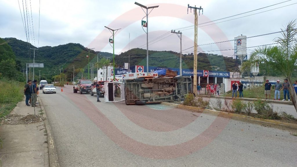 Huejutla, Hgo. – Siete lesionados fue el saldo que dejó la volcadura de un vehículo del transporte público, además de cuantiosos daños materiales.