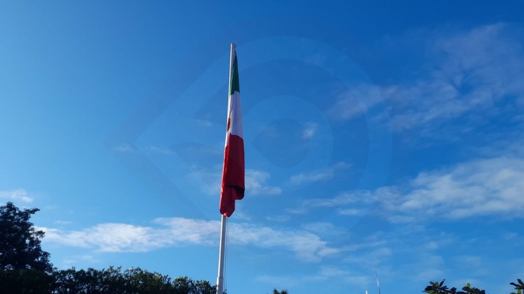 En la explanada del reloj municipal se llevó a cabo el izamiento de bandera a toda asta, previamente se colocó una lona en la cual se destaca “la victoria o la muerte con honor, siempre en cualquier misión”.