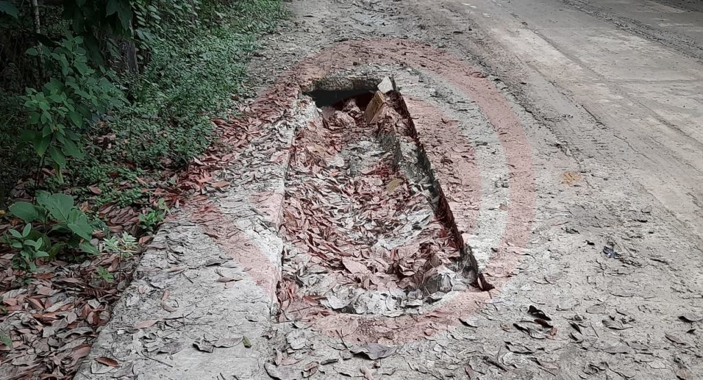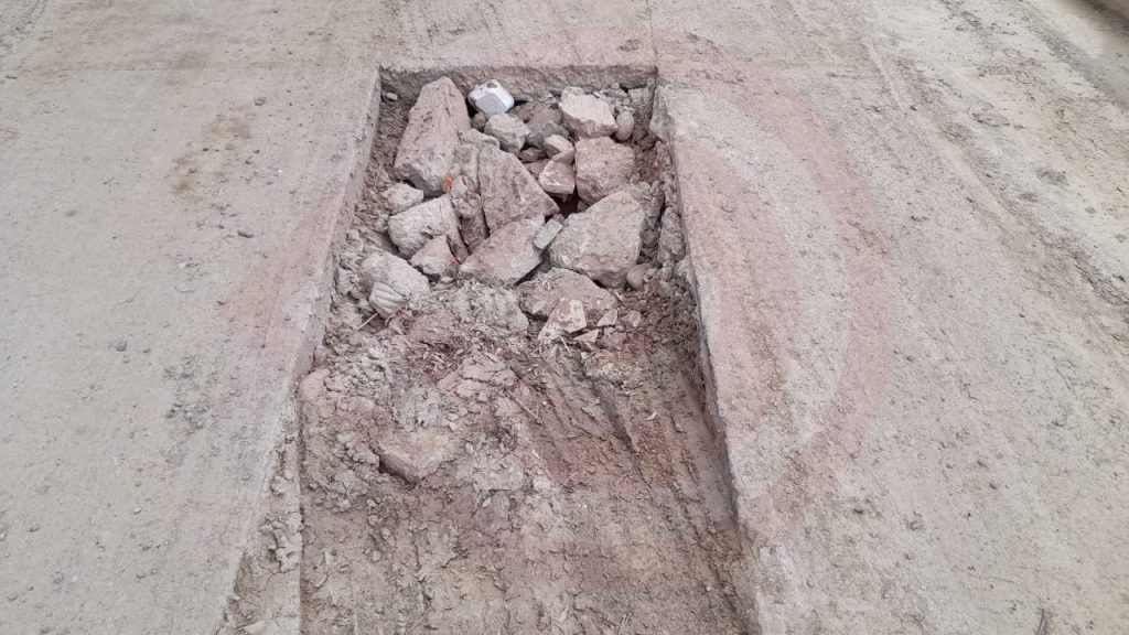 A pregunta expresa, comentaron que la calle no tiene mucho tiempo de haberse pavimentado, pero lo que la deterioró es que posteriormente introdujeron dos tuberías de drenaje, uno pluvial en un acotamiento y otro sanitario, proveniente de Tancazahuela en medio de la arteria.