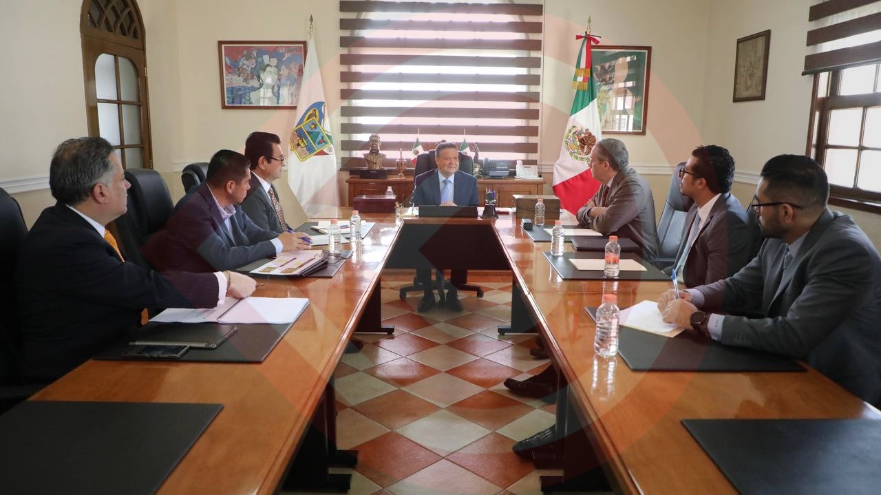 Pachuca, Hgo.- El gobernador Julio Menchaca Salazar acompañado por integrantes de su gabinete se reunió con Javier Emiliano González del Villar, director general de Logística, y Stephano Fonseca Andrade, gerente de Medición, Regulación, Balance y Desarrollo Comercial de Pemex.